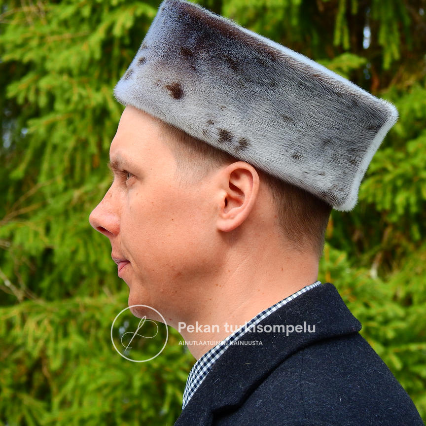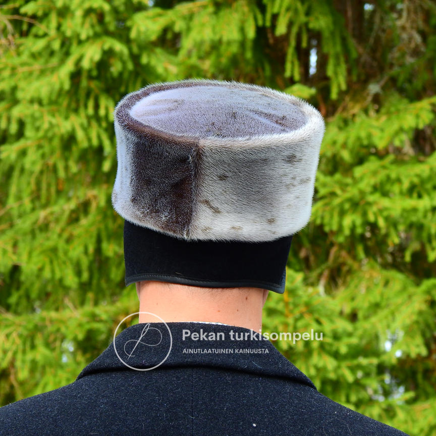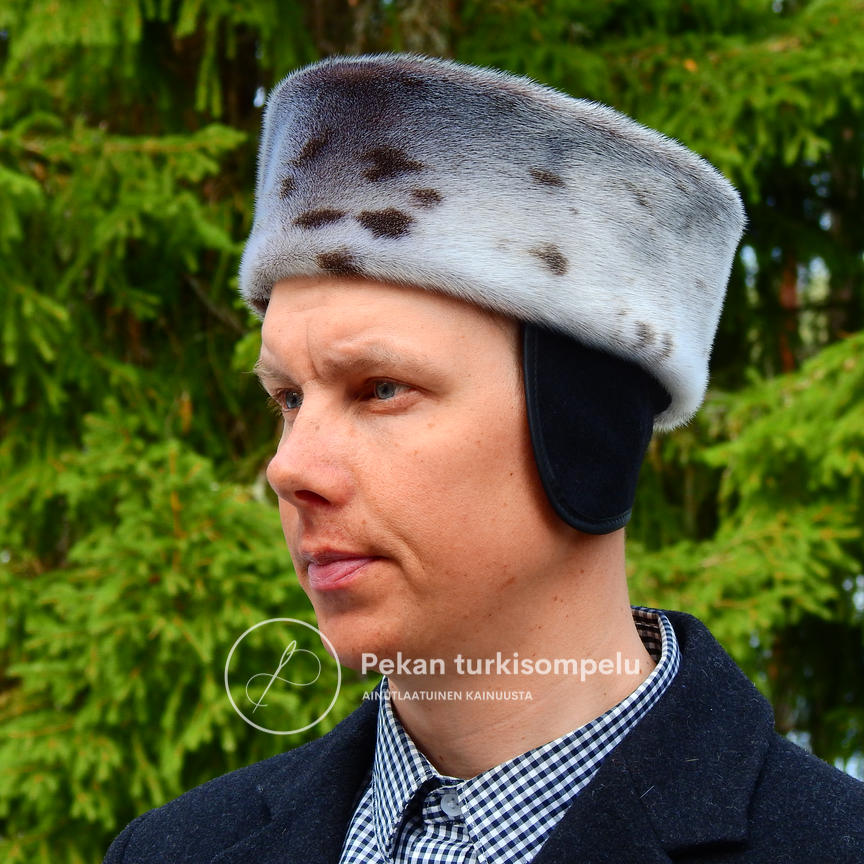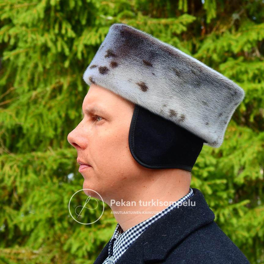 Available as full-fur or with leather crown. Optional earflaps are easily folded up into the crown when unnecessary. Seal's stiff, short hairs are uniquely suited to moister conditions, making this an easy-care, all-weather choice for your formal outdoor events.