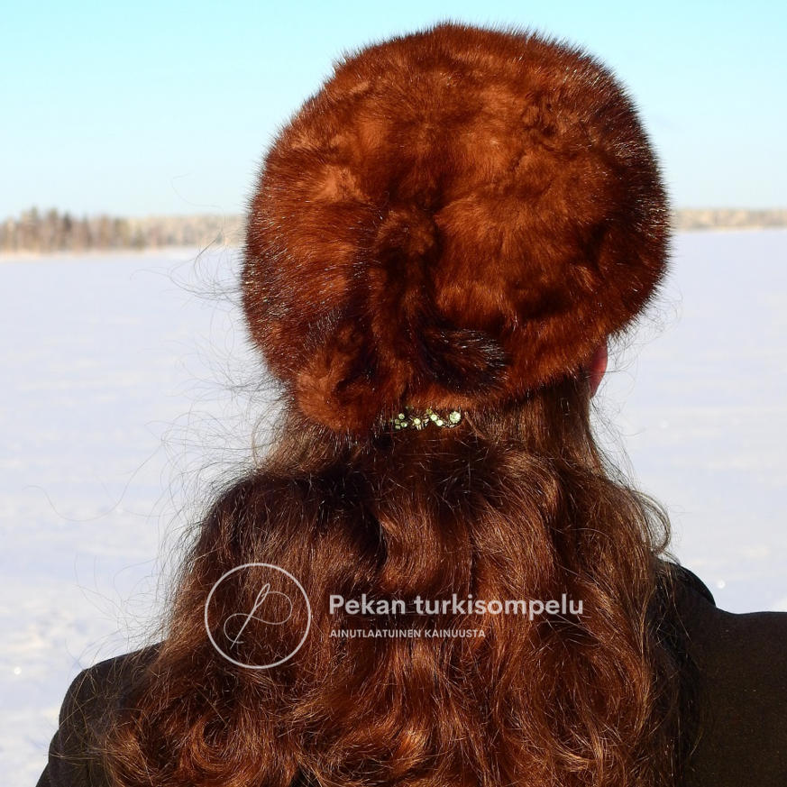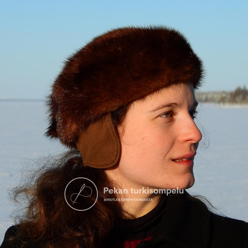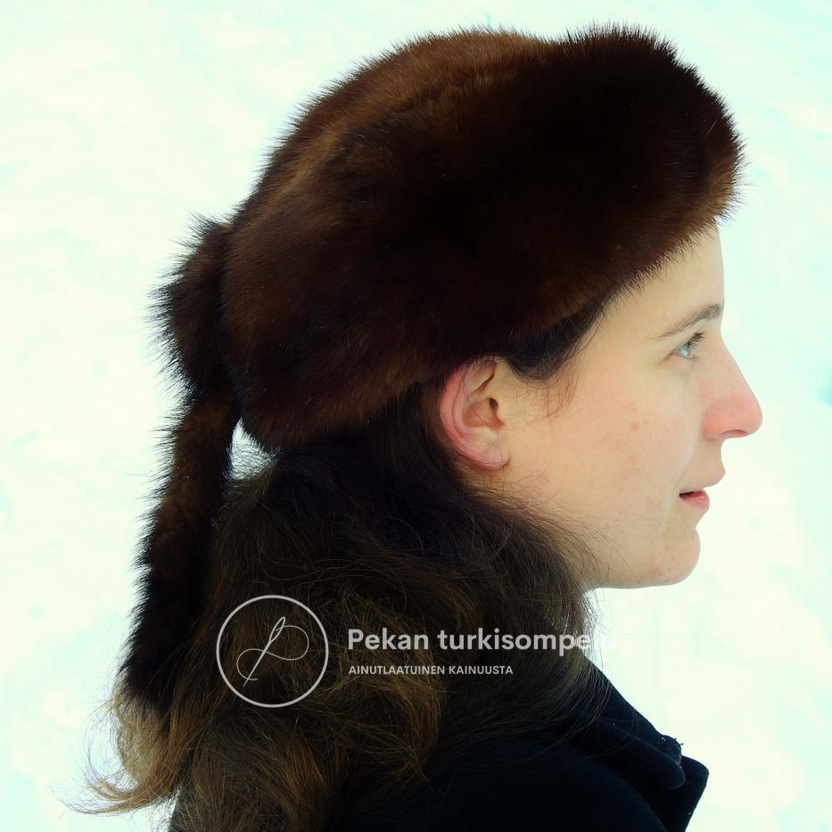Warm and comfortable, full-fur pill box hats or used by both men and women. Optional tail decoration and fold-in felt earflaps. Other fur options possible (e.g. marten/sable).