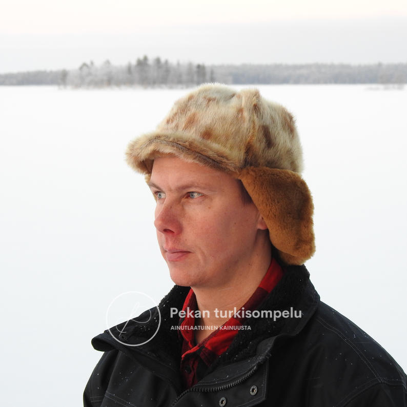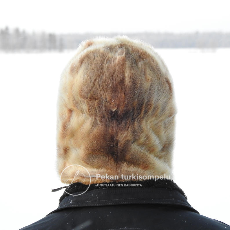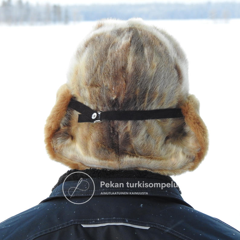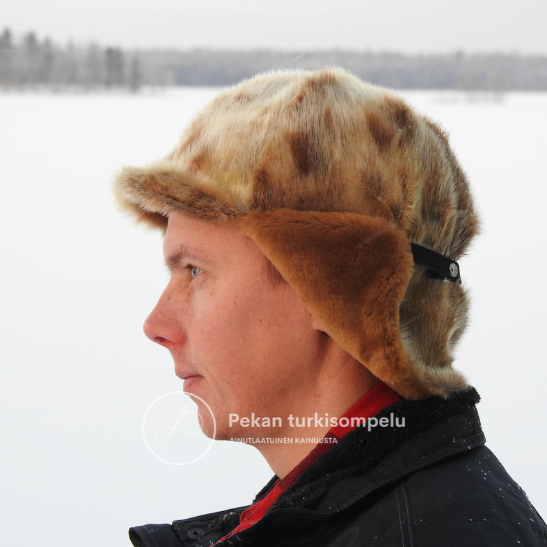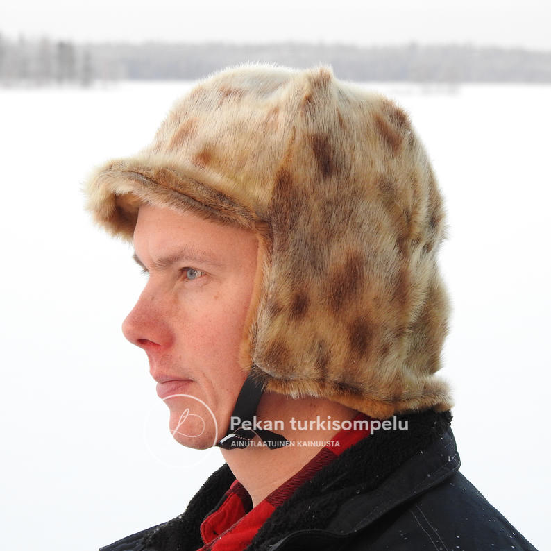 Asiakkaan pyynnöstä tarjoamme tämän käytännöllisen hylje-lammastyölakin mittatilaustyönä. Lyhyt lippi suojaa silmiä tuulelta ja lumelta, ja kätevä korva-niska suoja saa helposti kiinnitetty alas tai taakse nepparilla.