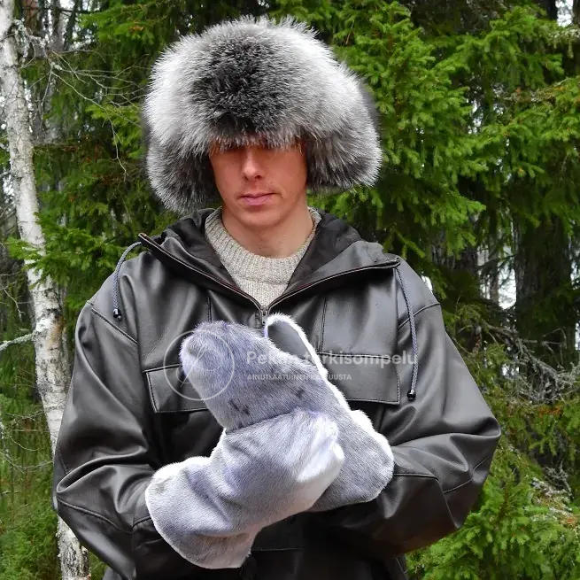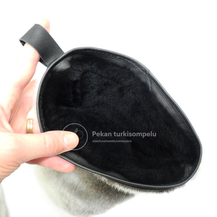 ("passirukkaset") aidolla lammasturkisvuorella. Kämmenosa nahka.