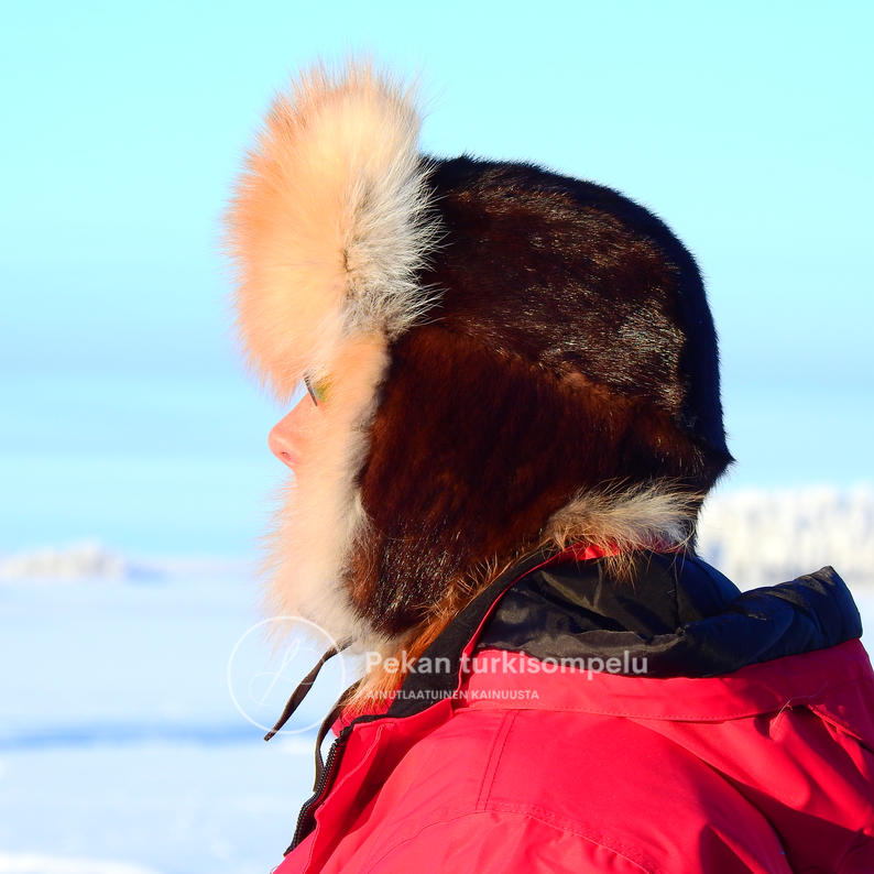 Erittäin lämmin ja näyttävä turkislakki, jossa sekä yläosa että korvaläpät kokonaan turkiksesta. Kevyt ja notkea. Koko (ks. ohjeet) ilmoitettava "Lisätiedot"-kenttään tilauksen loppuvaiheessa.