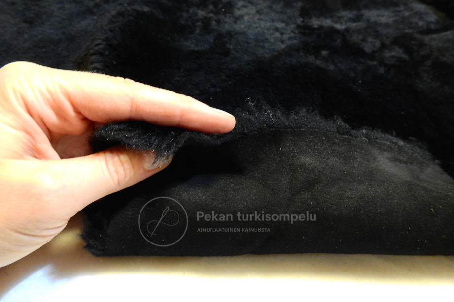 Puoli-kihara n. 10 mm karva. Musta mokkanahka kääntöpuolella. Pieni-kokoiset n. 3,5-4 nj/kpl: koko n. 63 x 50 cm. 1 paketti, jossa 4 kuvauksen mukaisia + 1 notkeampi ja kiharampi (viimeisessä kuvassa).