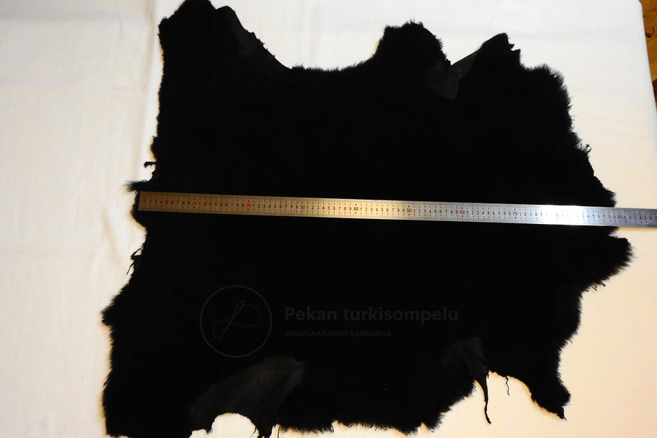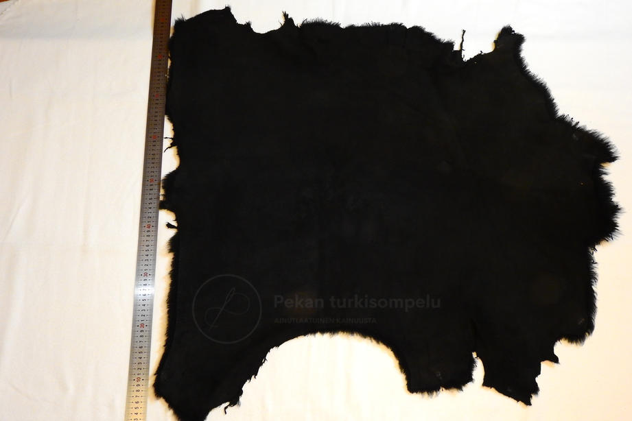 Hyvä-laatuista musta kihara n. 1 cm lammas. Siisti musta mokkanahka kääntöpuolella. Sopii esim. hattuihin tai vuorimateriaalina. Koko n. 83 x 60 cm. Myydään 2-kpl pakkauksena.