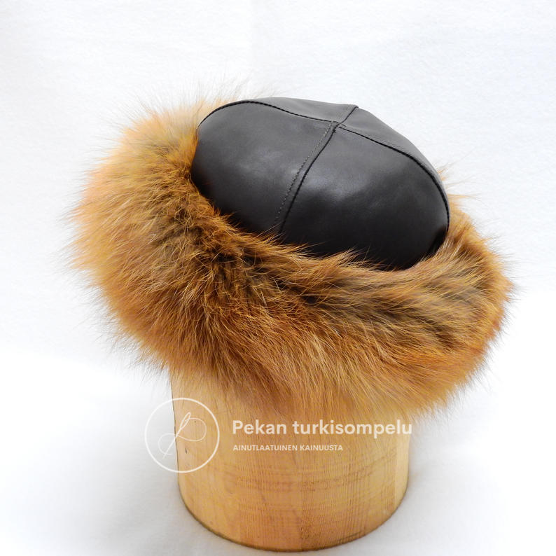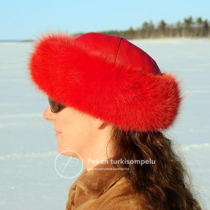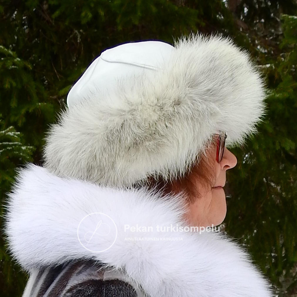 Naisten tyylikäs suikkalakki kettureunuksella ja nahkakuvulla. Perinteisien valko-, harmaa-, musta-, ja punakettusävyjen lisäksi löytyy myös eksoottisempia värejä.