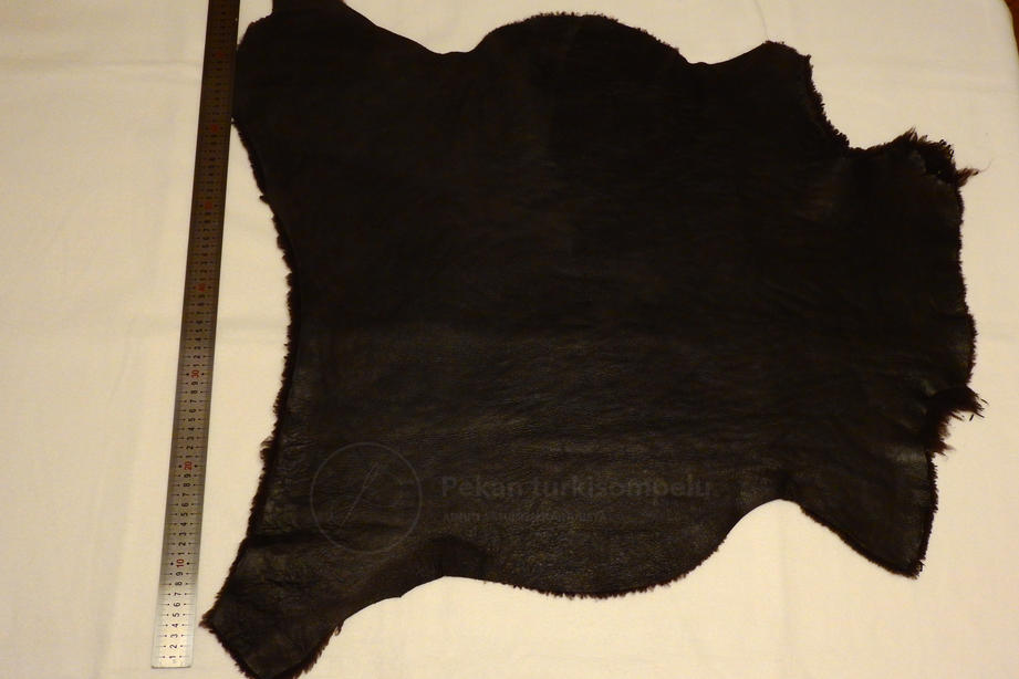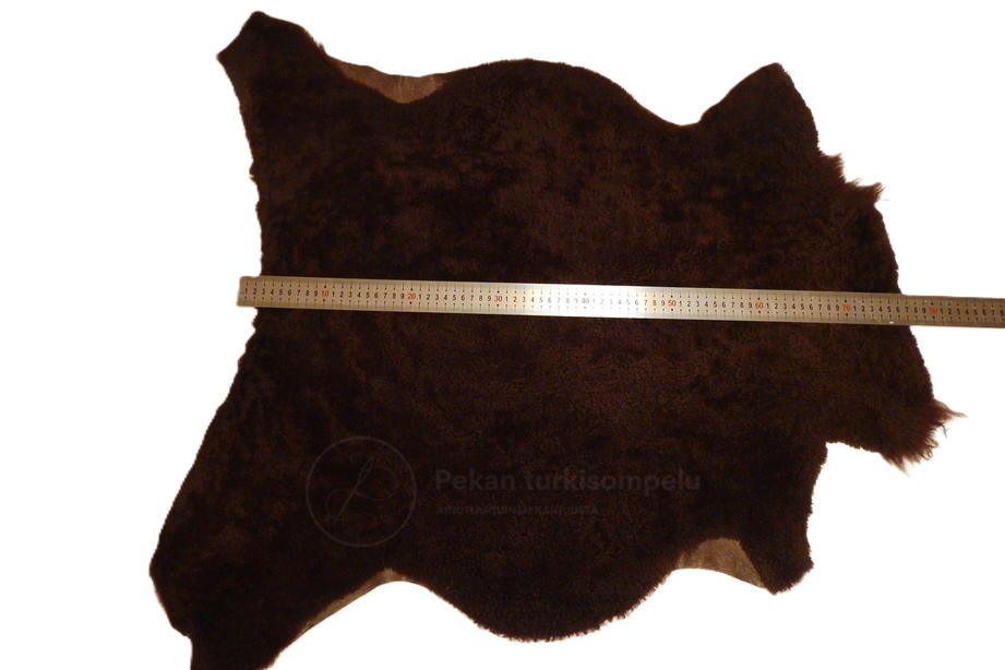 Tummanruskea n. 9 mm kihara lammas. Notkea, hyvä-kuntoinen talja. Nappala-kelsi viimeistely sopii esim. lammasrukkasiin sellaisenaan, tai taljaa voidaan käyttää esim. vuorimateriaalina. Koko n. 73 x 62 cm.