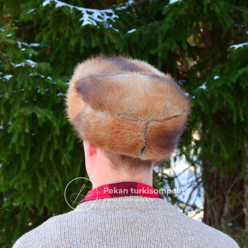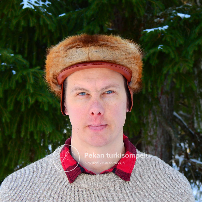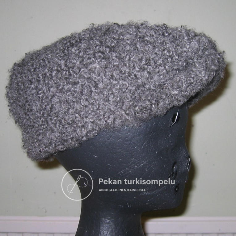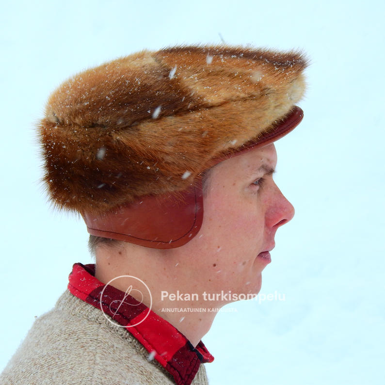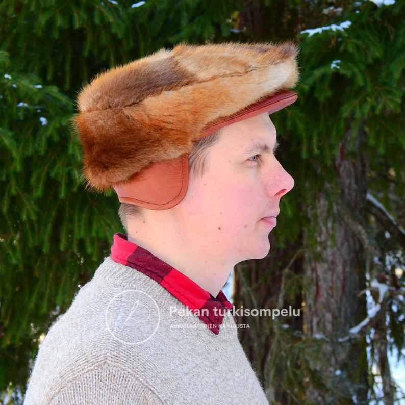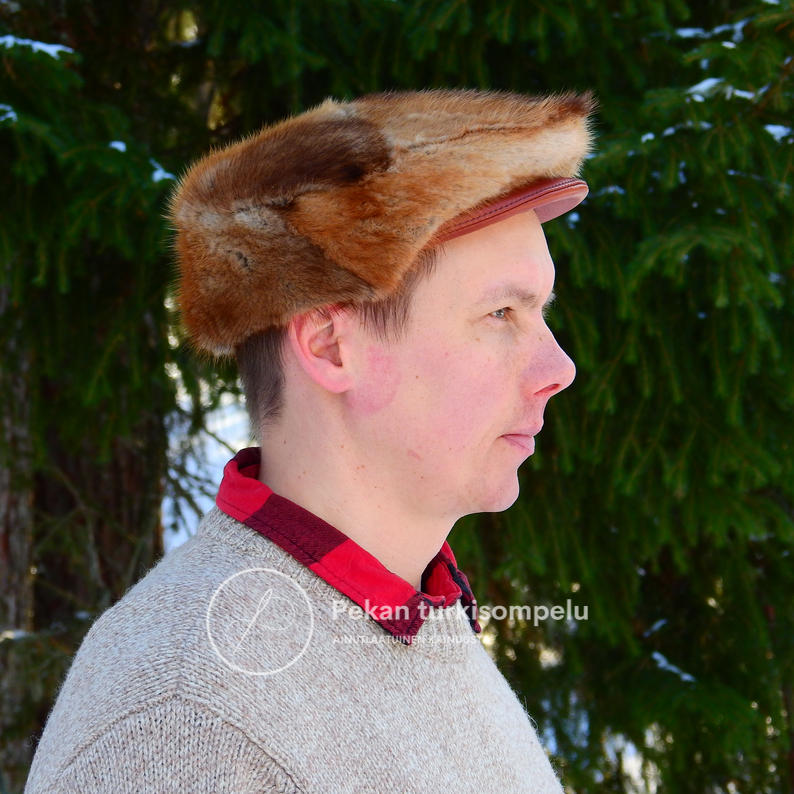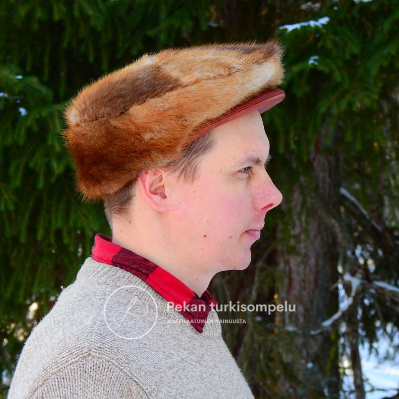 Turkis- tai lammaslippis mittatilaustyönä, korvaläpillä tai ilman. Kuvissa piisami-poronnahkalippis sekä erilaisia lammaslippiksiä.