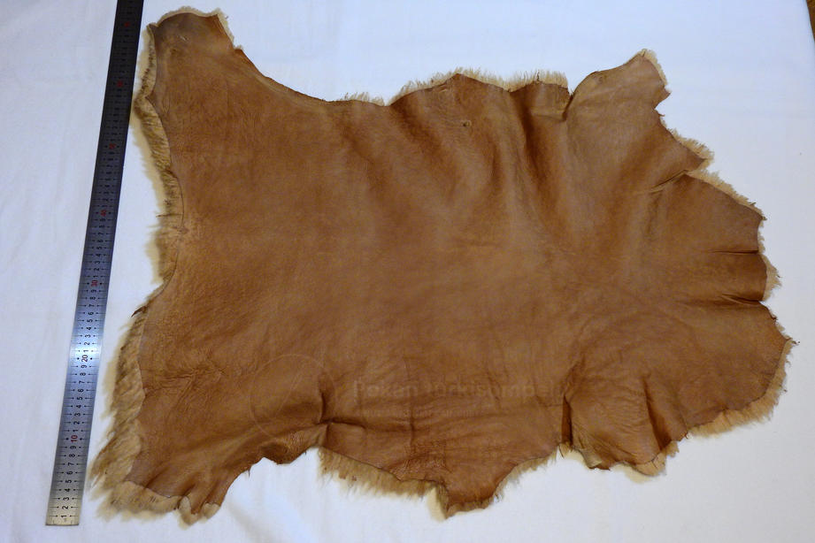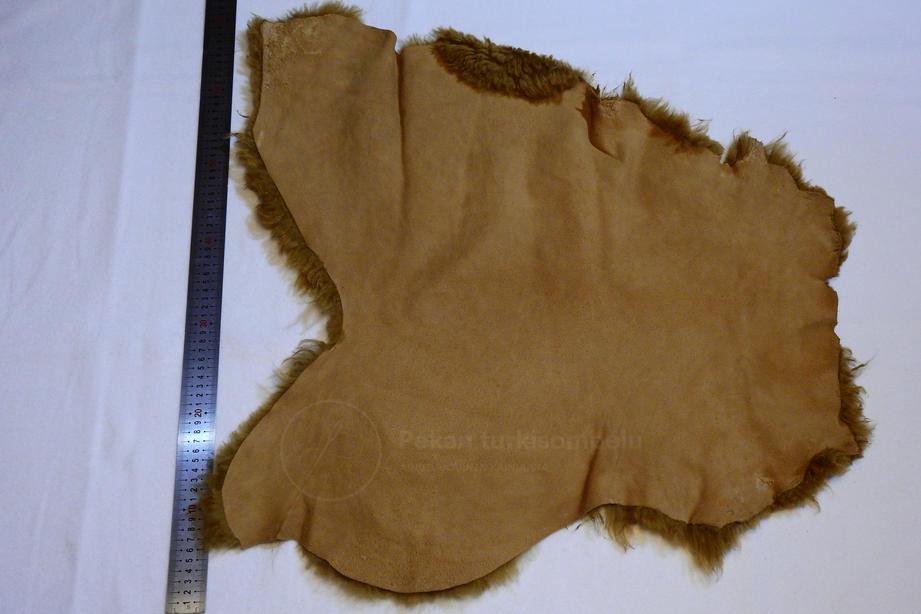 kihara talja. Ohut, hieman kiiltävä nahkapuoli. Koko n. 75 x 50 cm.