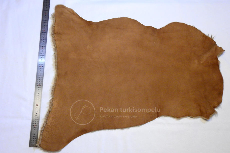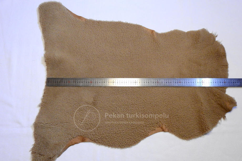 Hyvä-laatuinen, pehmeä, ja pienehkö harmaanruskea lammas, joka sopisi myös vuorilampaaksi. Kihara n. 10 mm karva. Notkea mokkanahka kääntöpuolella. 1 paketti, jossa 4 taljaa. Pienehkö koko n. 60-80 x 46 - 57 cm (noin 4 nj/kpl). Yhteensä neljässä taljassa n. 16 nj.